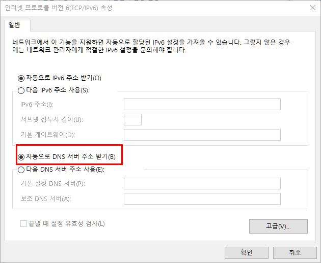 - 네트워크 DNS설정이 임의로 설정되어 있는 경우