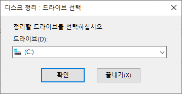 b. 드라이브 선택은 운영체제가 있는 "C:\"로 선택하고 확인을 합니다.