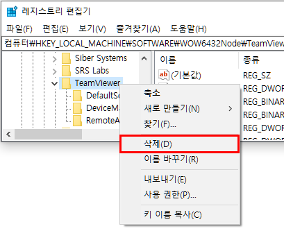 [FAQ5] Teamviewer 설치 오류일때 레지스트리, 임시파일 제거방법