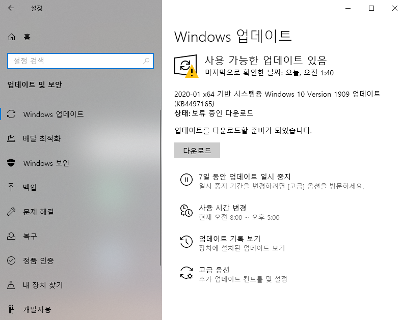2. 윈도우를 업데이트 하자
