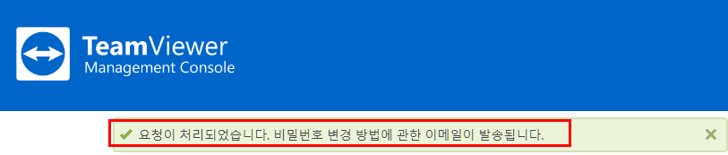 b-2) 아래 화면처럼 "요청이 처리되었습니다. 비밀번호 변경 방법에 관한 이메일이 발송됩니다."라는 문구가 있으면 요청이 완료된 것입니다.
